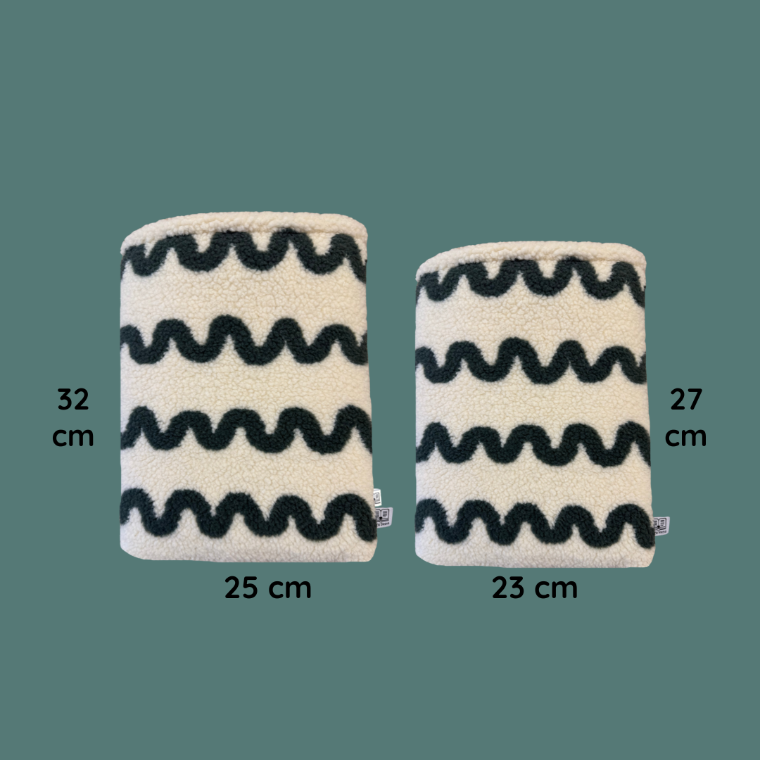 De Book Sleeve Fluffy Green Waves biedt betrouwbare, winterse bescherming voor jouw favoriete boek. De buitenzijde is vervaardigd uit zachte teddy-stof in crème, afgewerkt met groene golflijnen voor een moderne uitstraling.